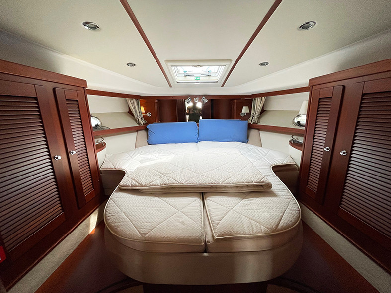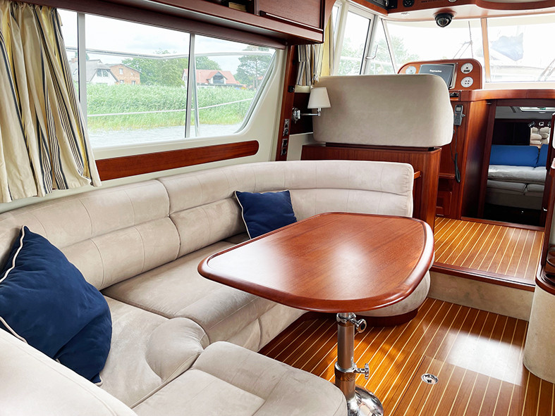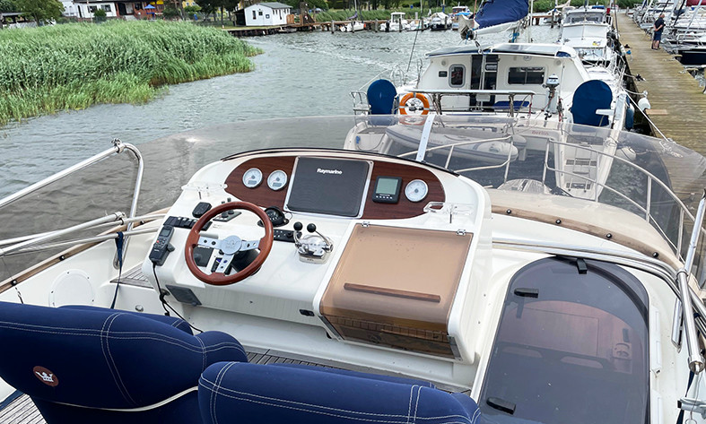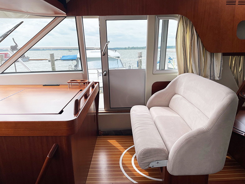 2. Steuerstand auf Fly, Bugkabine, Gästekajüte, Geräteträger klappbar, Innenfahrstand, Salon, Teak auf Badeplattform, Teak auf Flybridge, Teak auf Gangborden, Teak auf Stufen zur Flybridge, Teak auf Vorschiff, Teak im Cockpit