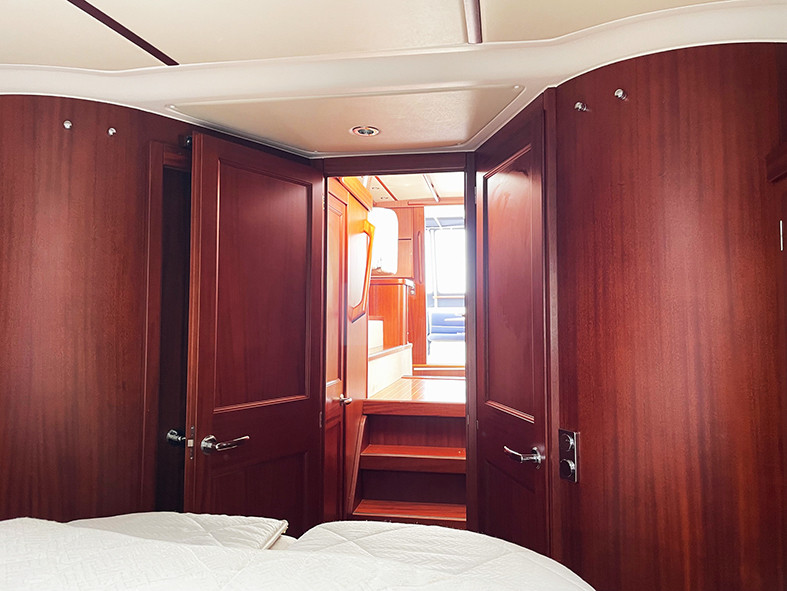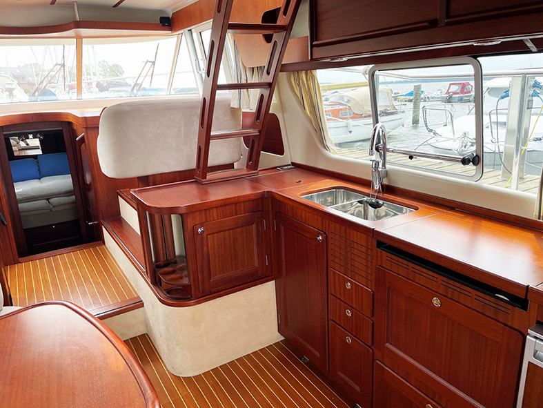 Sehr gute Ausstattung inkl. Bug- und Heckstrahlruder, Yachtcontroller für Motor sowie für Bug- und Heckstrahlruder, hydraulische Gangway, komplettes Teakdeck, Spannungsumwandler etc.