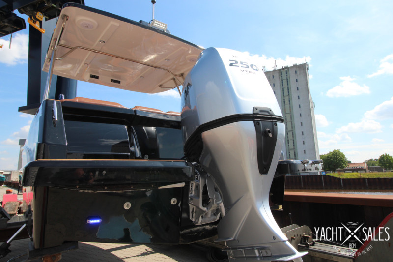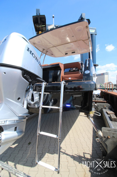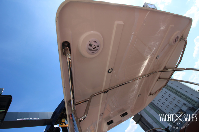 Ankerkette, Badeleiter, Badeplattform integriert, Bugpolster, Druckwasseranlage, Fender, Festmacher, Heckdusche warm/kalt, Lautsprecher, Polster, Radio, Sonnenliegen, weitere Extras
