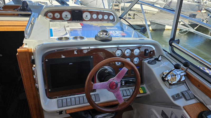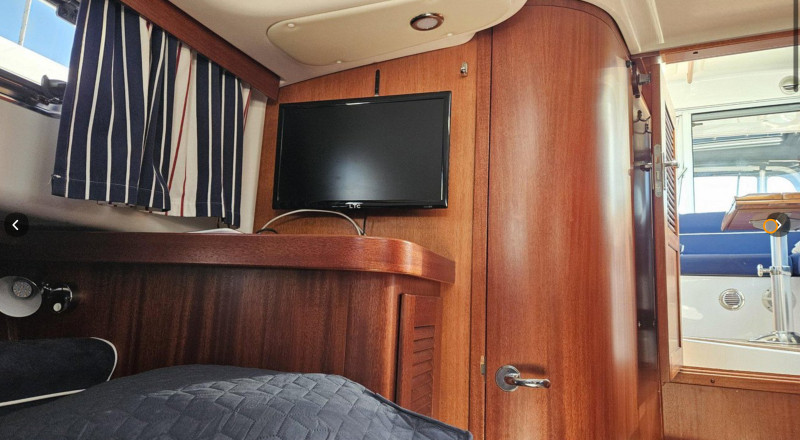 Teakholz auf allen Decks und allen Böden im Inneren (guter Zustand), Elektrisches Schiebedach, Offener Bugkorb mit Bugspriet, Teakholzstufen, klappbare Bugleiter, Elektrische Ankerwinde (Bug) mit Edelstahlkette und Fernbedienung, Elektrische Ankerwinde (Heck) mit Bleiankerband und Fernbedienung, große Badeplattform mit Stauräumen und Badeleiter, elektrischer Suchscheinwerfer, Bugstrahlruder, Camperverdeck, Landstromkabel, 230 und 12V Steckdosen, Induktionsfeld, Kühlschrank, Warmwasserbereiter, Warm- und Kaltwasser mit Dusche innen und außen an der Badeplattform, Zusätzlicher Seewassermischer in der Spüle in der Küche, Fäkalientank mit Abfluss über Bord und durch Deckventil zum Abpumpen, Wechselrichter 1.500 W, 2x Sonnenkollektoren mit Regler, Komplette Batteriebank, Batterieladegerät, Dieselheizung mit Auslass im Salon, in den Kabinen und in dem Cockpit, Defroster für die Frontscheibe, Hydraulische Lenkung, Scheibenwischer, Volvo Penta Power Trim, Neuer Raymarine Axion 9“ GPS-Plotter mit Echolot, Neues digitales Raymarine-Radar (integriert), Neuer Raymarine-Autopilot, UKW-Funkgerät mit AIS, Kompass, TV LTC in der vorderen Kabine, Pioneer Stereoanlage mit Lautsprechern im Salon und im Cockpit, Automatisches Feuerlöschsystem im Maschinenraum, manueller Feuerlöscher, Elektrische Lenzpumpen, Manuelle Lenzpumpen, Fender, Festmacher, Bootshaken, Flaggenhalter, u.v.m.!