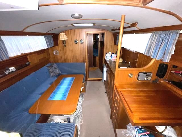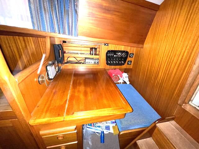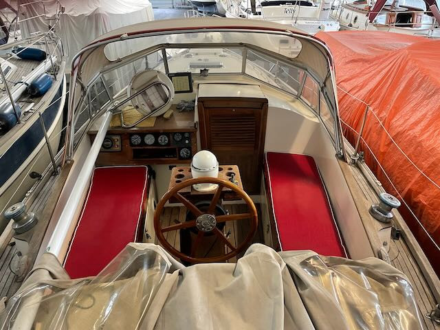 Klassiker aus 1. Hand mit einem Volvo Penta MD 17C Dieselmotor, Achterkajüte, Bugstrahlruder, gelattetes Großsegel, Rollfock, Rollgenua, beige Segelpersenning, Spibaum, Blister, Sprayhood, Kuchenbude, Teilpersenning über Baum von Achtern bis ca. 1,00 m zum Mast, Teakdeck (muss in Teilen überholt werden), Teak im Cockpit, Landanschluß, 3 Batterien, Batterieladegerät, Kompass. Das Schiff befindet sich nahezu in seinem Originalzustand und steht seit mehreren Jahren in der Halle in Neustadt in Holstein und kann nach Absprache besichtigt werden.
