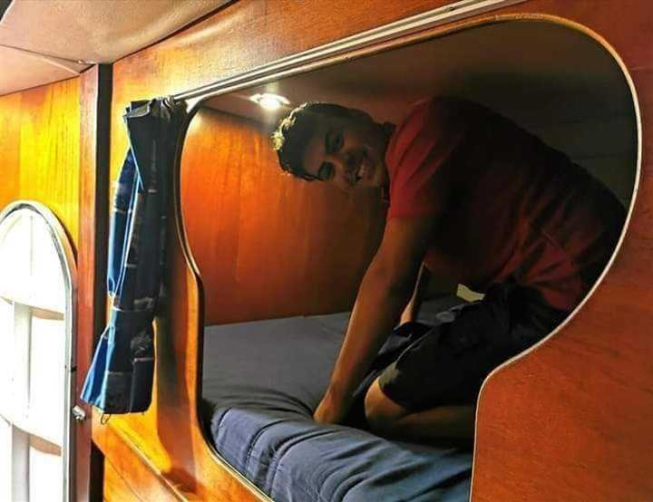 2 X Guest Cabins. Length 2.8m (9’01’) Each fitted with either two bunks or a double berth and occasional pipe cot. Deck light and dorade ventilator.