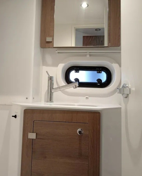 Zur Bootsausstattung gehören ein klassisches Großsegel, ein Generator, ein Bimini und ein externer GPS-Plotter. Außerdem verfügt das Boot über Heizung, Klimaanlage, ein Audiosystem, Außenlautsprecher und Innenlautsprecher. Die voll ausgestattete Kombüse umfasst einen Kühlschrank, einen Backofen, einen Herd, eine Spüle und Küchenutensilien.