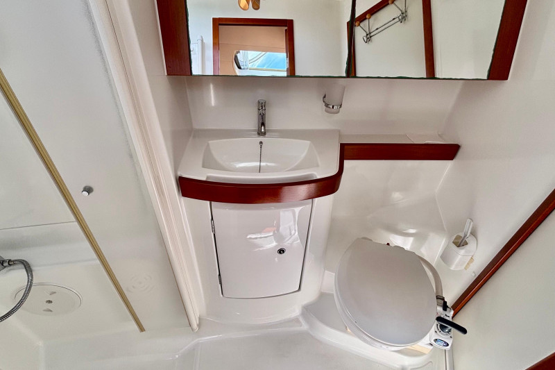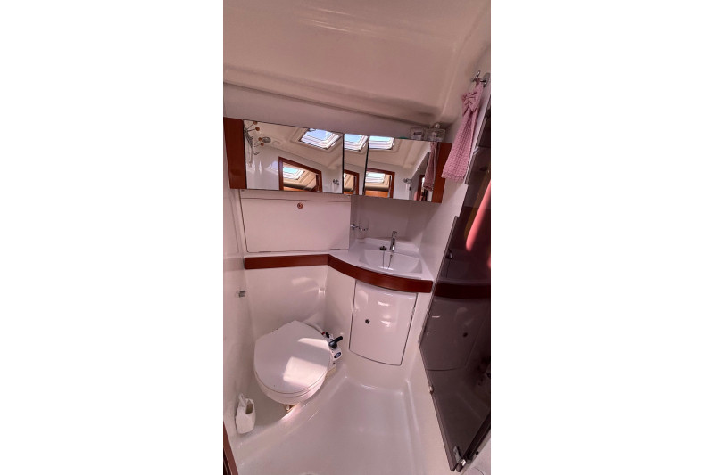 Located beneath the companionway, Yanmar 4JH5E 54hp 4-cylinder marine diesel engine. Freshwater cooled via heat exchanger. Single lever controls with electric start. Shaftdrive to fixed pitch 3-bladed propeller (new October 2018). Racor fuel filtration system to remove water and contaminates - New August 2024The engine was serviced in November 2025 and is in very good condition. Engine hours are approximately 1250hrs. Engine Hrs meter reading has intermittent display. Sleipner Sidepower bow thruster.