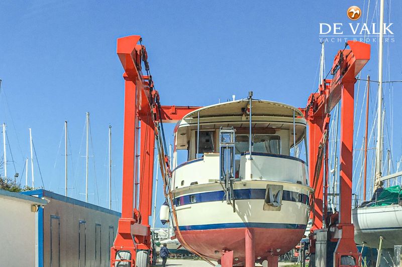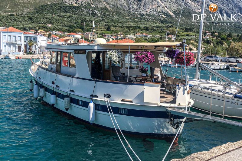 The De Ruiter 1550 Canoe Stern is a highly seaworthy and solidly built vessel, fully equipped for long and comfortable voyages. This robust classic features modern Mitsubishi engines, a spacious engine room with standing height, and high-quality insulation combined with double glazing, ensuring a quiet, safe, and energy-efficient cruising experience. Thanks to its practical layout, sturdy construction, and thoughtful details, you will feel at home on board immediately. The vessel is equipped with aspudpole for easy anchoring at shallow locations.