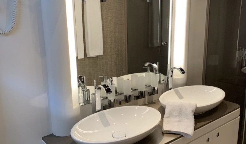 Die Elegance 72 verfügt über 4 Kabinen mit insgesamt 8 Kojen. In der Beschreibung wird hervorgehoben, dass darunter eine großzügige Master-Suite sowie drei komfortable Gästekabinen sind. Der Innenraum überzeugt mit viel Volumen, elegantem Ambiente und hochwertiger Ausstattung.