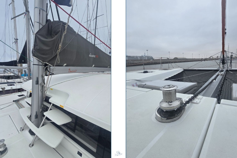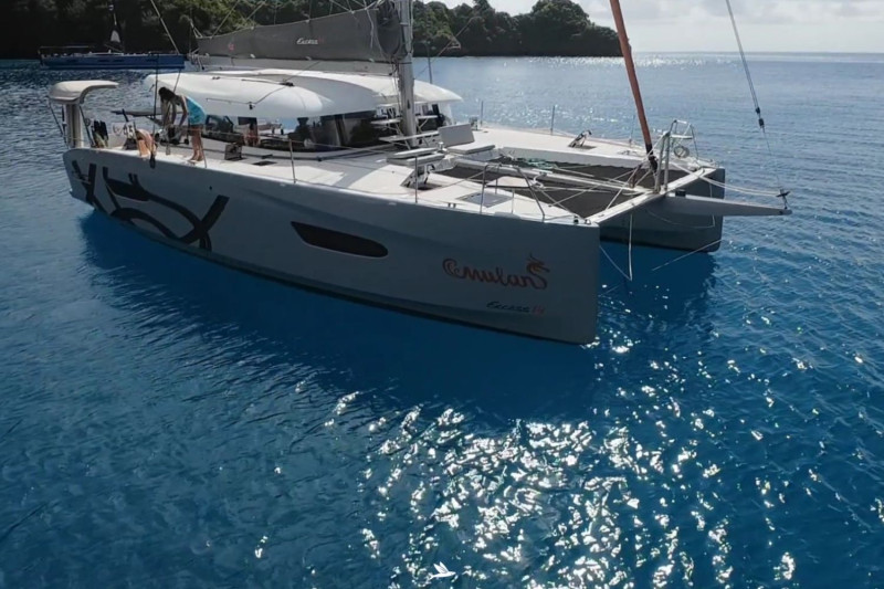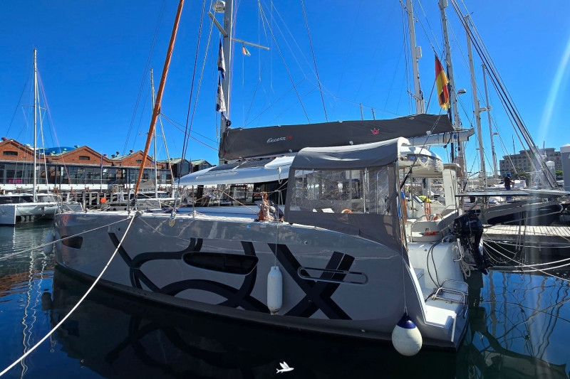 The Excess 14 Pulse Line is the pure incarnation of the Excess DNA. She is the result of dedicated design work and industrial execution, unique to the brand. This Pulse Line version offers maximum performance with a raised mast, extended sail area and blue water preparation. She is a cruising yacht that is fun and playful, with sleek lines. A renowned production catamaran offering exceptional comfort, space and the thrill of sailing. Designed for extended voyages and on-board living, this catamaran is made to explore remote destinations, from secluded coves to undiscovered waters. The Excess 14 Pulse Line takes the wisdom of its predecessors and achieves an impeccable balance, ensuring comfort without compromising the pleasure of cruising. The spacious interior is inspired by larger vessels, with a 2m x 2m bed in the master cabin and en suite bathrooms with separate showers. On deck, the inviting ambience of an open cockpit and twin helm stations provides a real sense of control and seamless interaction with the crew. She is soon closing the circumnavigation with the German owner couple aboard, crossing the southern Atlantic towards the Brazilian coast, to be handed over in the Caribbean after May 2026, ready to continue to conquer the oceans under new command.