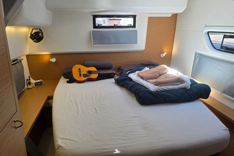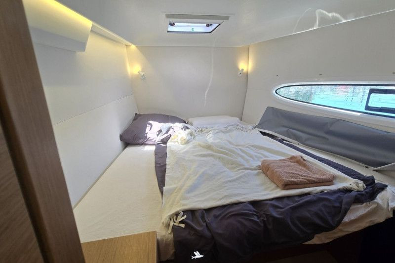 The Excess 14 Pulse Line is the pure incarnation of the Excess DNA. She is the result of dedicated design work and industrial execution, unique to the brand. This Pulse Line version offers maximum performance with a raised mast, extended sail area and blue water preparation. She is a cruising yacht that is fun and playful, with sleek lines. A renowned production catamaran offering exceptional comfort, space and the thrill of sailing. Designed for extended voyages and on-board living, this catamaran is made to explore remote destinations, from secluded coves to undiscovered waters. The Excess 14 Pulse Line takes the wisdom of its predecessors and achieves an impeccable balance, ensuring comfort without compromising the pleasure of cruising. The spacious interior is inspired by larger vessels, with a 2m x 2m bed in the master cabin and en suite bathrooms with separate showers. On deck, the inviting ambience of an open cockpit and twin helm stations provides a real sense of control and seamless interaction with the crew. She is soon closing the circumnavigation with the German owner couple aboard, crossing the southern Atlantic towards the Brazilian coast, to be handed over in the Caribbean after May 2026, ready to continue to conquer the oceans under new command.