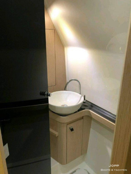 3-Wege-Ventil, Badeleiter, Badeplattform, Bugstrahlruder, Cockpitspüle, Decksluke, Heckdusche warm/kalt, Hecktür zur Badeplattform, Heizung, Radio, SAT-Antenne, Sonnenpolster auf Vorschiff, TV, TV Antenne, Warmwasseranlage