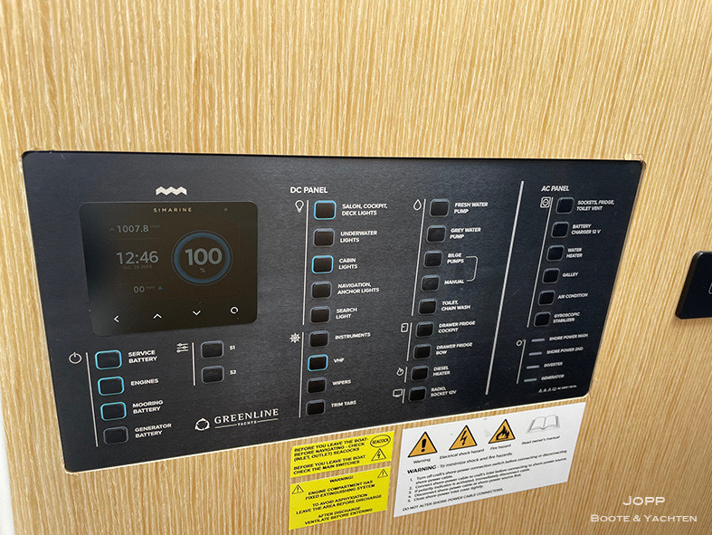 Bilgepumpe elektrisch, Bug-Ankerwinde elektrisch, Deckswaschanlage, Landanschluss 230 Volt, Scheibenwischer mit Waschanlage, Solaranlage zum Batterieladen