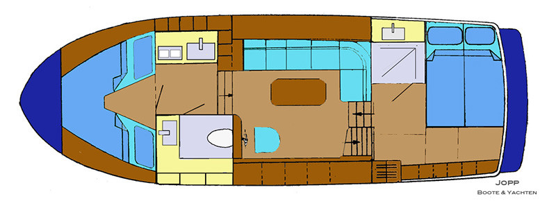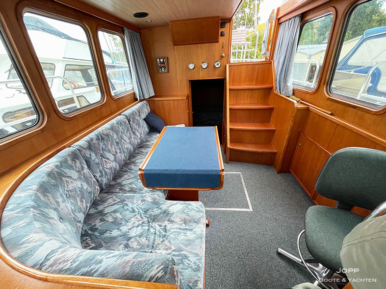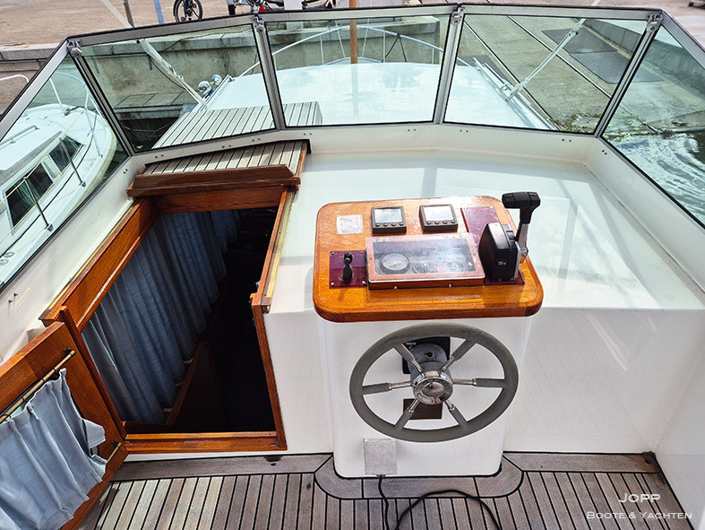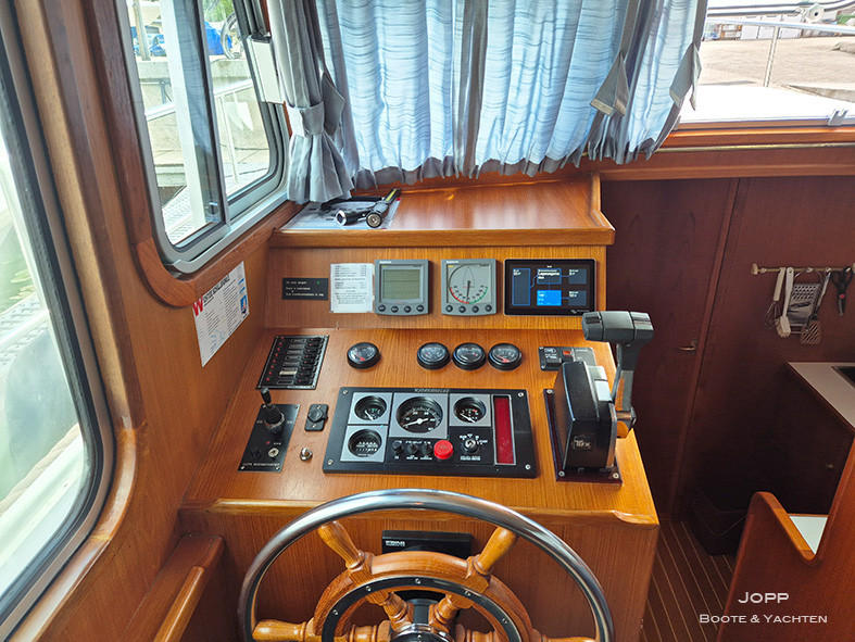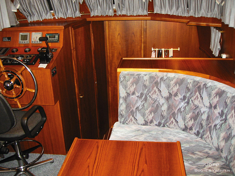 2. Steuerstand auf Achterdeck, Achterkajüte, Bugkabine, Innenfahrstand, Salon, Teak im Cockpit