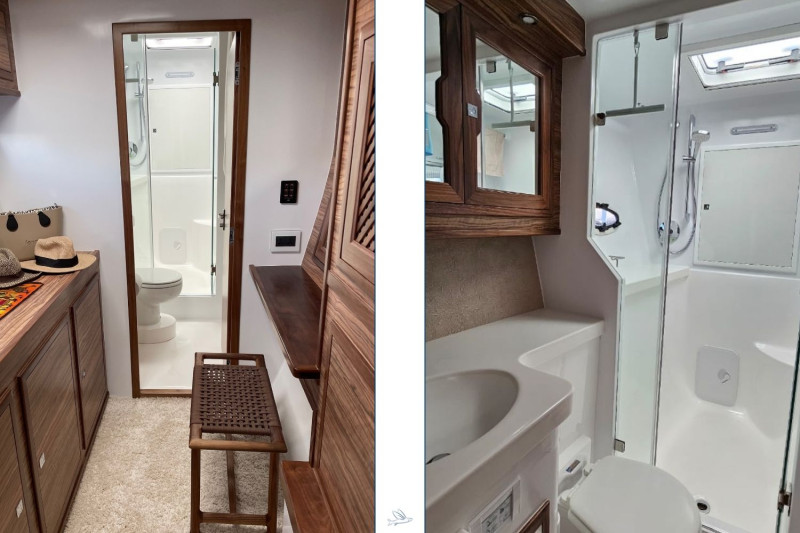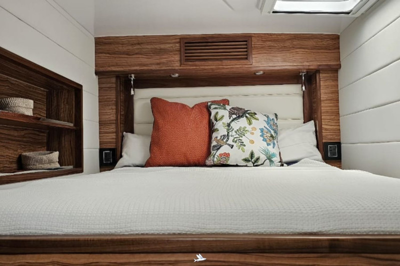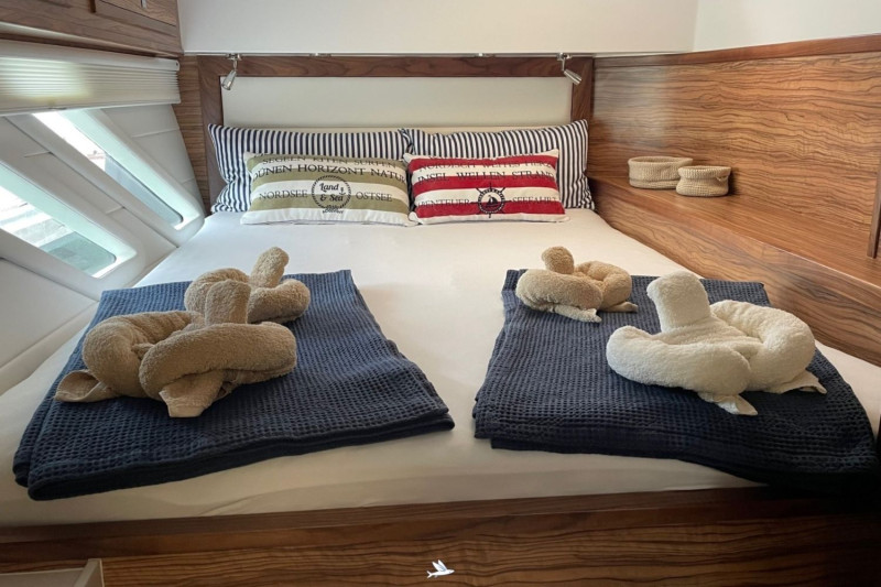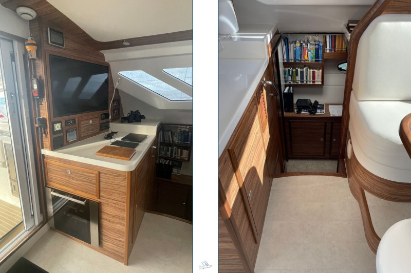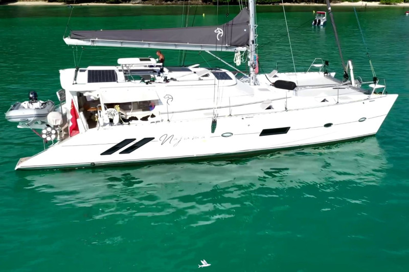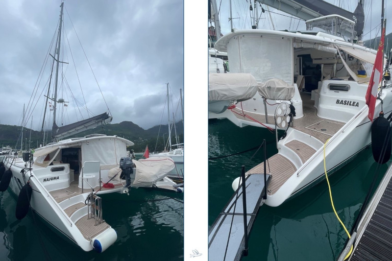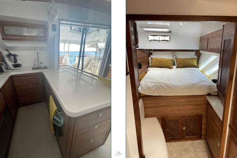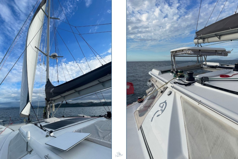 The Knysna 500SE designed by renowned Angelo Lavranos, is a state-of-the-art blue-water catamaran built in Knysna, South Africa. This N°99 offers the latest technology and exceptional features. This 3-cabin version with three double berths in spacious cabins provides ample room and storage. She is equipped with a fully fitted galley, spacious bathrooms, and an open salon with direct access to the cockpit – perfect for relaxing moments on the water. Noteworthy is the versatile equipment, ideal for blue-water cruising: powerful solar panels, INTEGREL generators, water-maker, Garmin navigation system, high-quality sails by North-Sails, etc. She also features a large refrigerator, air conditioning, and generous tank capacities, ensuring comfort and convenience on long journeys. The Knysna 500SE offers excellent sailing performance, stability, and safety. She is the perfect choice for long-distance cruising, combining speed, comfort, and thoughtful equipment for discerning blue-water sailors. This owner dedicated three cabin version has been fully equipped for single-handed ocean cruises in safety with full autarky at sea. The Swiss owner couple sailed 15.000 miles in the Indian Ocean and decided to offer their dream catamaran to be handed over to the next proud owners now. The asking price is 30% below a new Knysna 500SE. Near New condition, refitted to be seen at the Knysna yard.