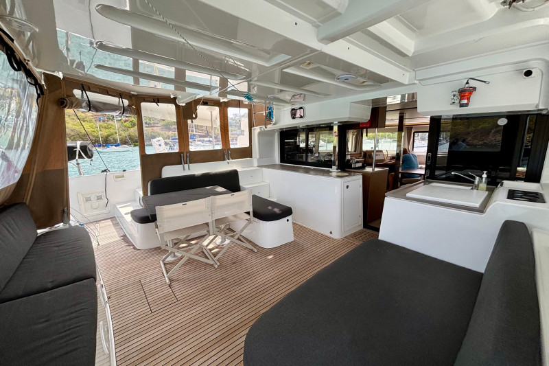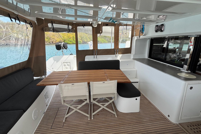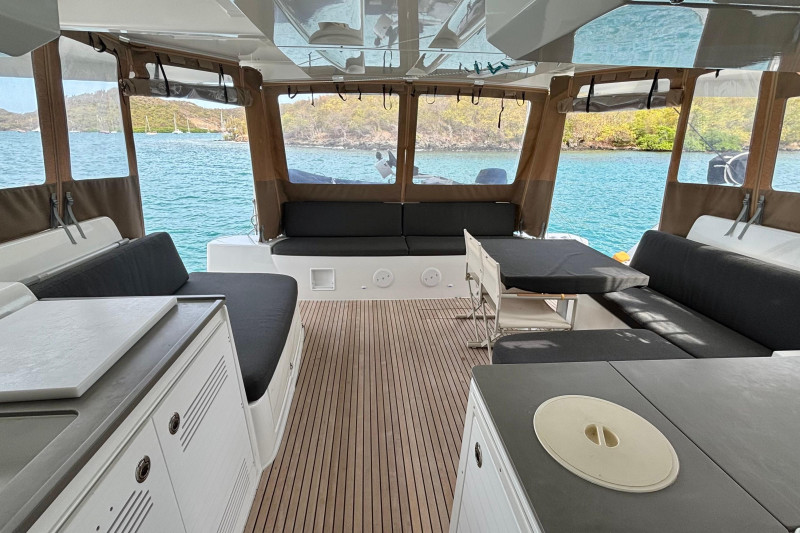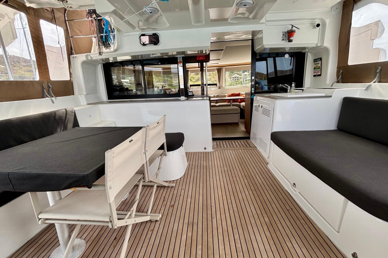 This Lagoon 46 is extremely well equipped with a range of high-end features, including: 'Tenderlift' hydraulic swim platform/dinghy lift, Highfield 340 centre console with a 20hp Honda outboard. A large solar array totaling 2100 W of power. Full cockpit and helm/upper lounge enclosure. Air conditioning, water-maker, generator. State-of-the-art B&G navigation system. Twin Yanmar 4JH57 diesel engines, washer-dryer, cockpit fridge-freezer and icemaker. The 2023 model benefits from resolved build issues of earlier models.