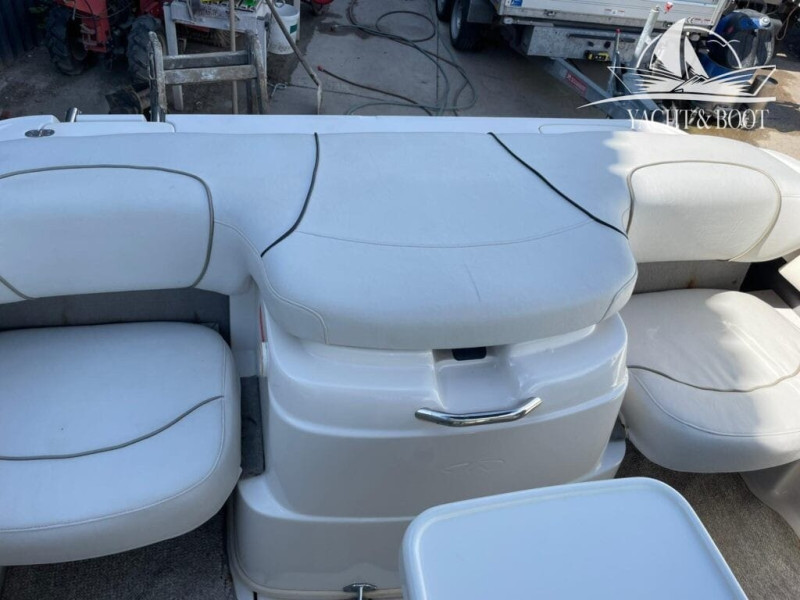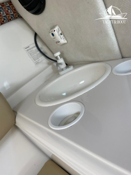 Badeleiter, Badeplattform, Cockpittisch, Radio, Sonnenpolster auf Vorschiff, Lautsprecher