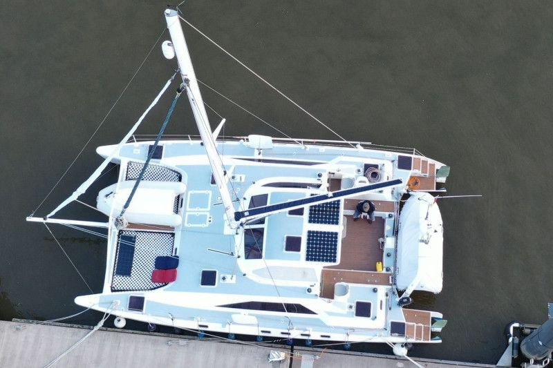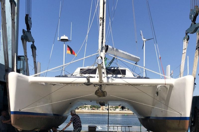 This excellent Farrier, the F-41 is designed to be a safe and roomy cruiser. She has outstanding speed and handling. Race-winning capability is central to Farrier’s success, without sacrificing interior space, seaworthiness or structural integrity. The F-41 is essentially a cruiser that will appeal especially to those with experience of Farrier designs who are now looking for a larger craft with more accommodation and facilities for living aboard and also ideal for long passage making. The current, German owner-couple, refitted and permanently up-graded this sound and best maintained catamaran for their 2024 ended Atlantic-circle. The cat is fully equipped for a permanent life aboard equipped for full autarky and remote office ability. Currently stored ashore at the yard in the South of Portugal, she received a full refit on batteries, solar, engine services and sails, including a new authorized CopperCoat application. Ready to cross oceans or to cruise European waters, this sound performance ocean-cruiser has been significantially price reduced and is available for handover to her next proud owner ahead of the 2026 sailing season.