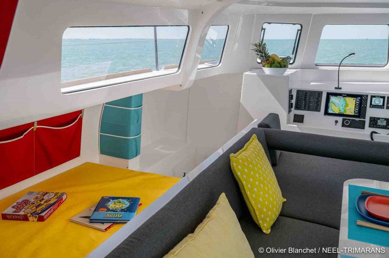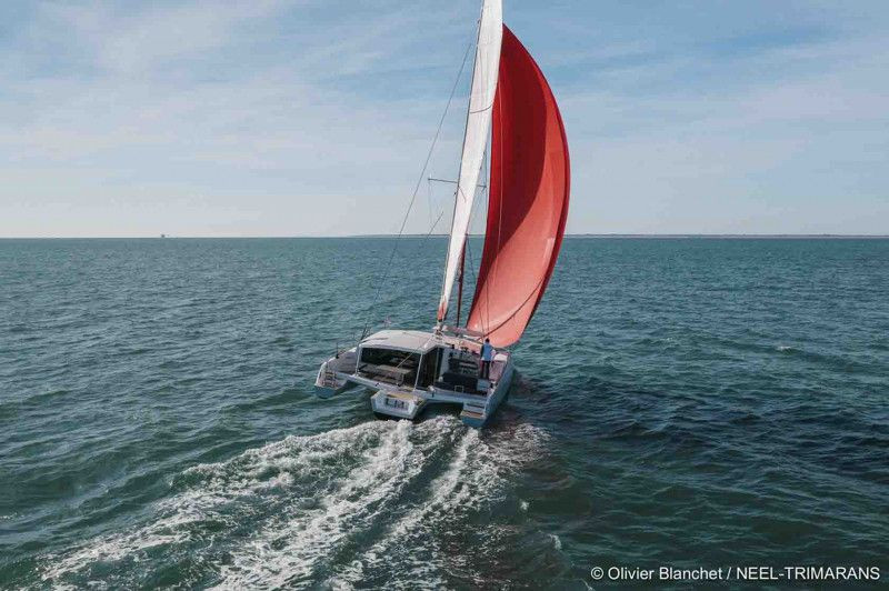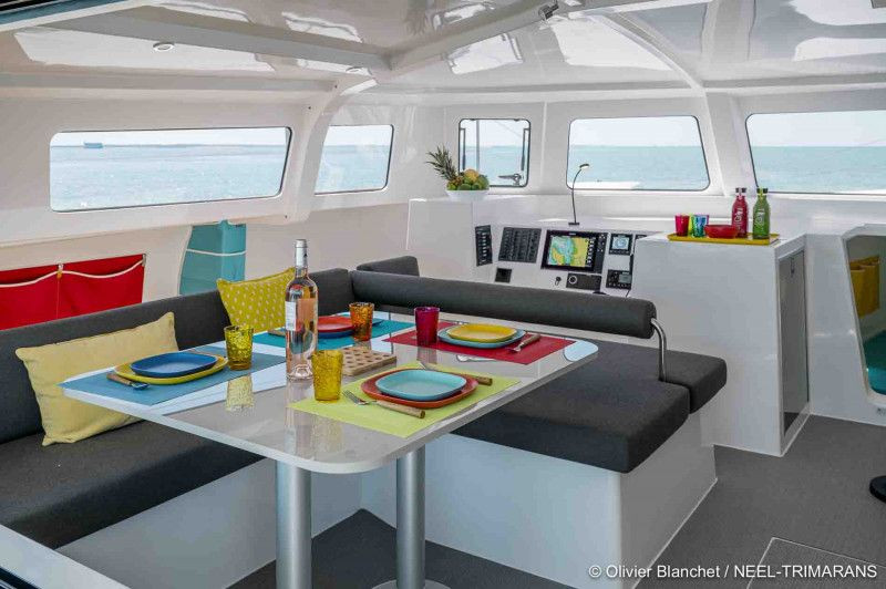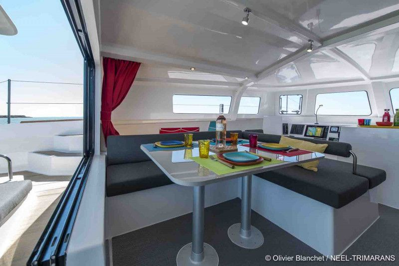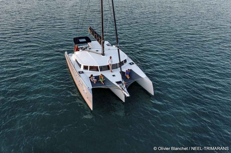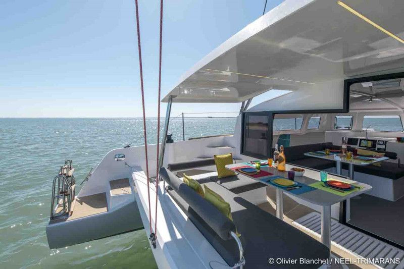 Mit diesem jüngsten knapp 13m langen Trimaran rundet die, im französischen La Rochelle beheimatete, Werft um Konzeptgründer Eric Bruneel die Flotte ab. Das NEEL typische, innovative Design, das viel Lebensraum mit herausragender Segelperformance vereint findet sich auch bei dieser Neuentwicklung, die erneut in Zusammenarbeit mit Marc Lombard konstruiert wurde. Der Decksüberragende Salonaufbau ermöglicht hier den geschützten Übergang in die Seitenrümpfe mit weiteren, optionalen, Doppelkabinen. Die Verbindung von Salon und Cockpit ist barrierefrei und wahlweise separiert, oder offen verbunden, nutzbar. Der Eignerbereich der über alle drei Rümpfe reicht bietet das NEEL typische Loft-Ambiente. Die NEEL 43 kommt in drei individuell definierbaren Layout Varianten, Evidence, Elegance & Charter, mit nochmals optimiertem Raum-Nutzungskonzept.