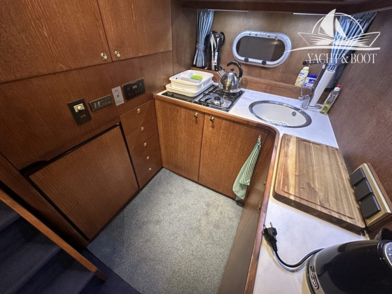 Ein Bugstrahlruder, moderne Navigationselektronik (Radar, Autopilot, GPS-Plotter) sowie elektrische Ankerwinsch und Lenzsysteme unterstützen den sicheren und einfachen Betrieb.