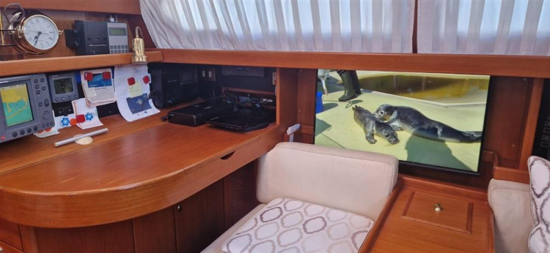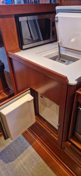 Sleeps 4 in 2 spacious cabins. Large master cabin aft with double berth, en-suite. Guest cabin forward with central double and separate WC with handbasin to starboard and shower room to port, custom built, in lieu of third cabin. Ample storage throughout the boat.