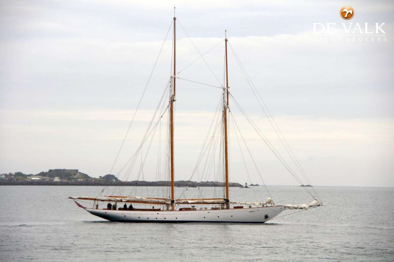 The Zaca A Te Moana is a 43.8-meter steel schooner by Olivier van Meer, built at Scheepswerf De Amstel. Modelled on US actor Errol Flynn’s yacht, she competed in the 2001 America’s Cup Jubilee and offers an exceptional refit basis to restore her beauty and sailing performance—a once-in-a-lifetime chance to shape a piece of sailing history to your vision. The Olivier van Meer 143ft “Zaca A Te Moana” is being sold via an online auction at Bright Auctions; bidding is exclusively via Bright Auctions. All auction information is available at: https://bit.ly/zacaatemoana