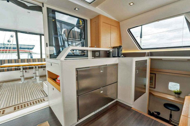 Wikiwiki – “The Fast One”: True to her name, Wikiwiki combines speed with Outremer’s hallmark balance of performance, comfort, and safety. Already proven in Atlantic and Pacific crossings, she’s ready for more with recent updates. As an Outremer 5X V2, Wikiwiki features top-tier upgrades: sporty reverse bows, a carbon mast, carbon bimini, Kevlar rigging, and a new Code Zero alongside a full sail suite for varied conditions. Despite her performance, she’s easily handled by a couple from protected helm stations, or from Formula One-style chairs with carbon tillers for an immersive experience. The owner’s layout dedicates the port hull to a spacious suite with a large bed, desk, and expansive shower. The starboard hull offers two guest cabins—convertible forward bunks or a queen, and a queen cabin aft. The ventilated salon and galley flow into the cockpit, creating a comfortable space for living, at anchor or underway. Equipped for sailing in autarky with solar, lithium batteries, genset, watermaker, and refrigeration, Wikiwiki is world-travel-ready with shore power adaptability (220V or 110V). Viewings by appointment; high-resolution photos and 360° virtual tour available on request.