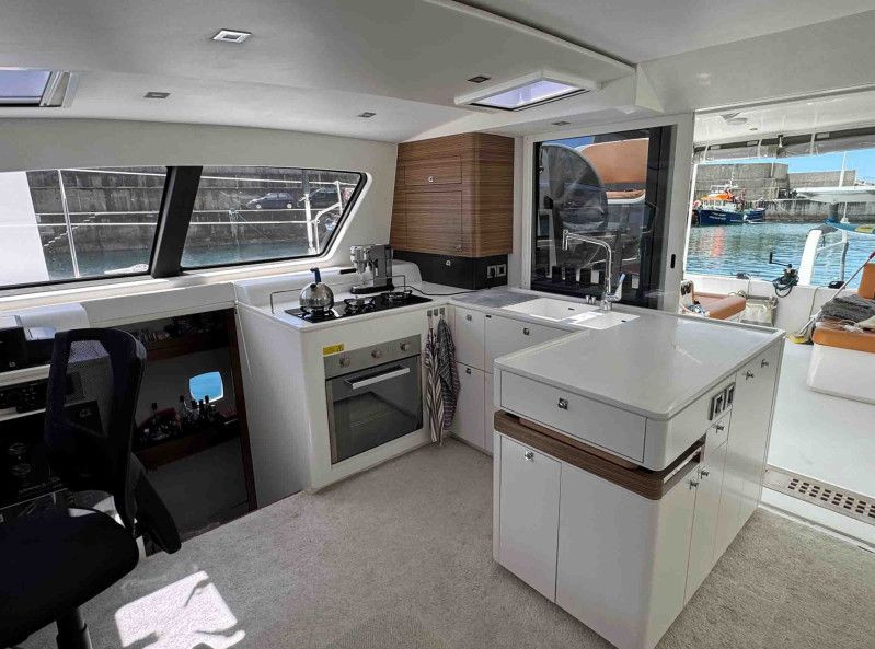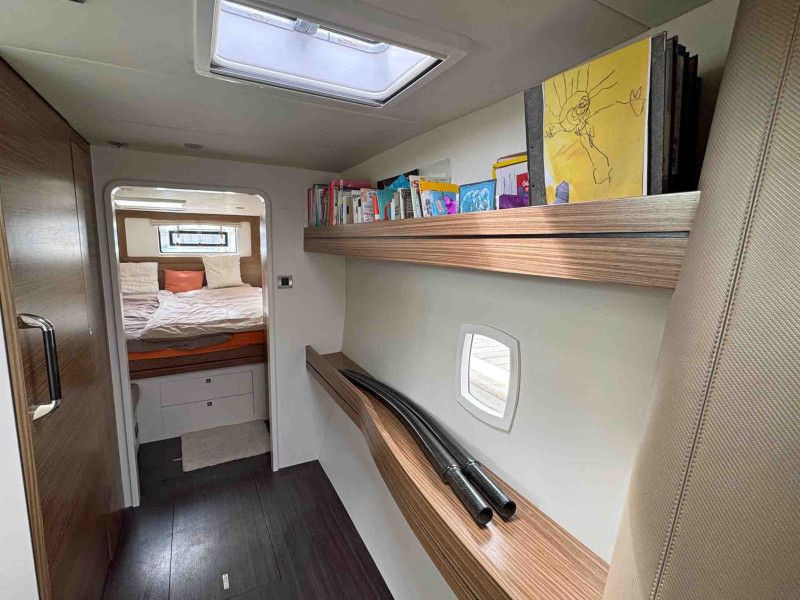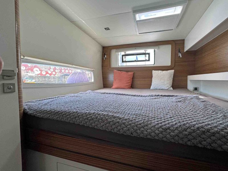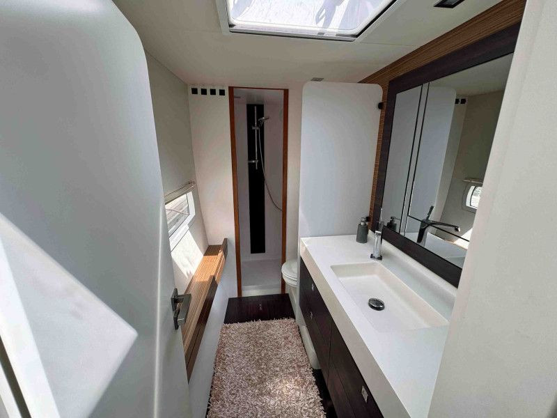 The Outremer 5X is a high-performance bluewater catamaran, designed by the renowned VPLP team and awarded European Yacht of the Year 2012. Known for her excellent sailing characteristics and ease of handling by a short-handed crew, she is a true masterpiece of French boatbuilding. Hull N°18 is a meticulously maintained 3-cabin owner’s version, delivered in 2017 to her first and only German owners. The port hull is dedicated entirely to the owner's suite. Her carbon options include mast, davits, bimini, and forward beam. Her sails include Hydranet main and genoa, a 2023 Code D gennaker and Code Zero, and a symmetric spinnaker. Seven layers of Coppercoat, applied in 2023, protect her underwater hulls. She offers exceptional autonomy with 880Ah batteries, solar panels (4x200W + 2x300W), a Watt&Sea hydrogenerator, and a Dessalator Duo watermaker. Additional features include a 7kg Samsung washer-dryer, Starlink, 10kW Webasto diesel heating, Raymarine electronics, and dual autopilots (second from 2022). 3,60m AB Hypalon dinghy with 15hp Yamaha outboard (both 2023) are included. This Outremer 5X in top condition, there is absolutely no maintenance backlog. She is berthed in the Canary Islands, immediately available. EU VAT paid. The world’s best 5X, ready to be handed over to her second proud owner.