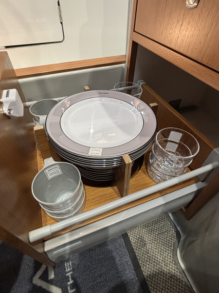 Badeleiter, Badeplattform integriert, Bugstrahlruder, Cockpittisch, Druckwasseranlage, Radio, Trimmklappen