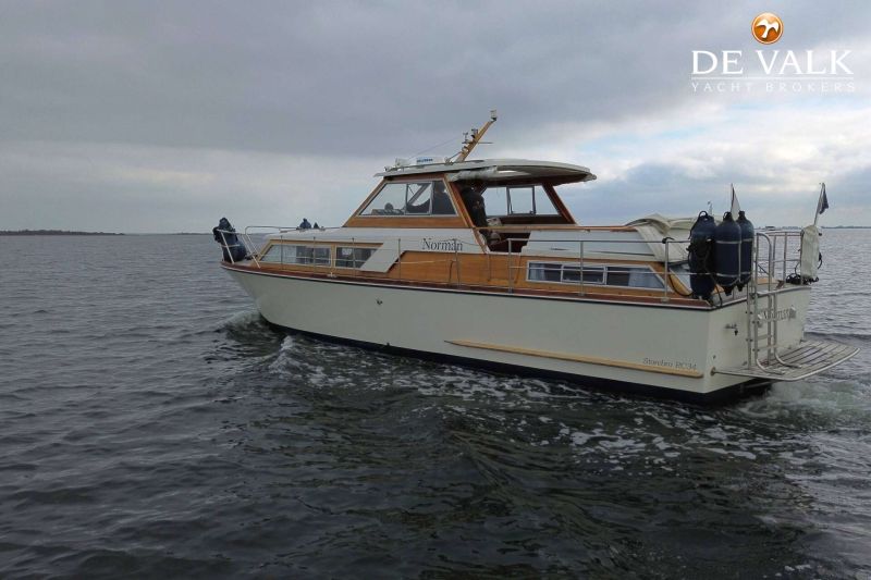 Very well maintained Storebro 34 Royal Cruiser called "Norman" built in 1983. The "Norman" is a great motor yacht to sail both inland and coastal waters. This Storebro 34 Royal Cruiser 34 is equipped with two strong and economical Volvo Penta diesel engines and a bow thruster. The interior has a new floor, diesel hot air heating, two cabins, etc.... In short, a very spacious classic motor yacht, also for longer stays on board.