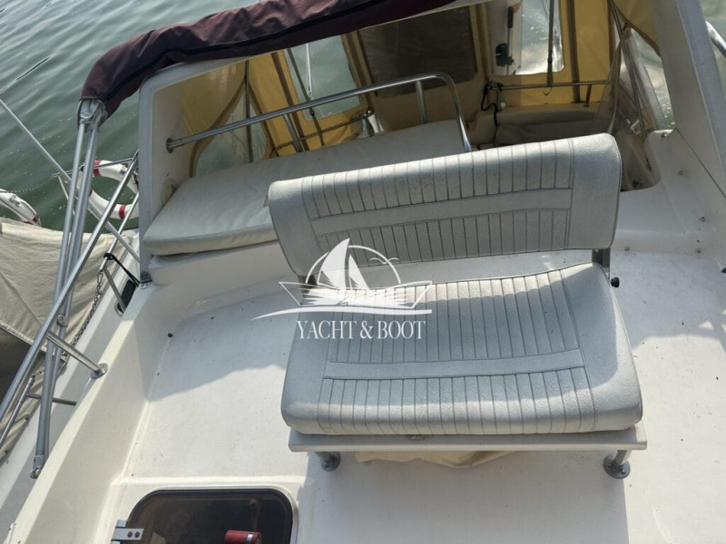 Diese wunderschöne Tristan 310 Fly ist ein echtes Raumwunder und verbindet sportliche Eleganz mit wohnlichem Komfort. Mit 9,20 m Länge und 3,05 m Breite bietet sie erstaunlich viel Platz für Familie, Freunde oder entspannte Törns zu zweit.
