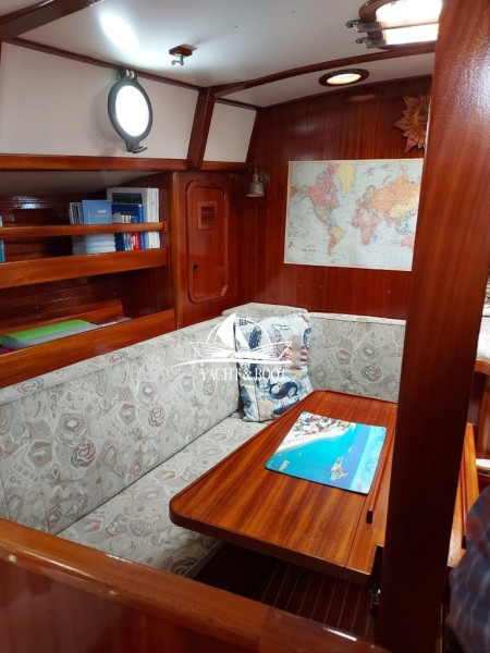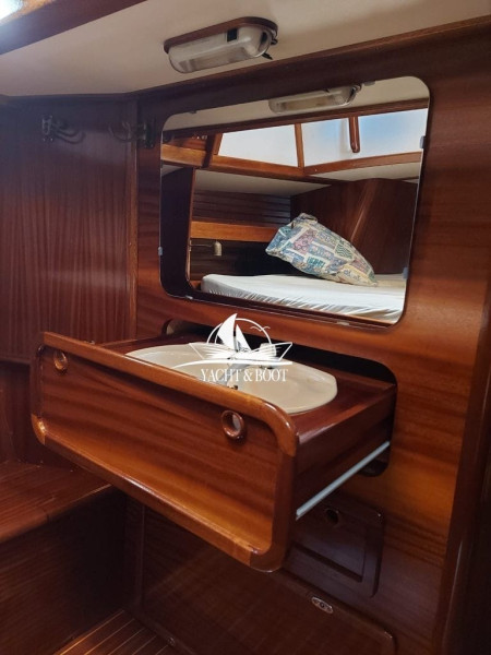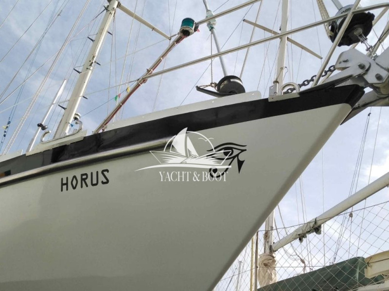Der Rumpf von HORUS wurde 1987 im Van De Stadt Design Knickspannt) auf der Werft Ballhausen in Norddeutschland hergestellt. Die Innenausstattung wurde dann in der Schweiz in 7-jähriger Eigenarbeit mit vielen speziellen Ideen vom Erstbesitzer kreiert und