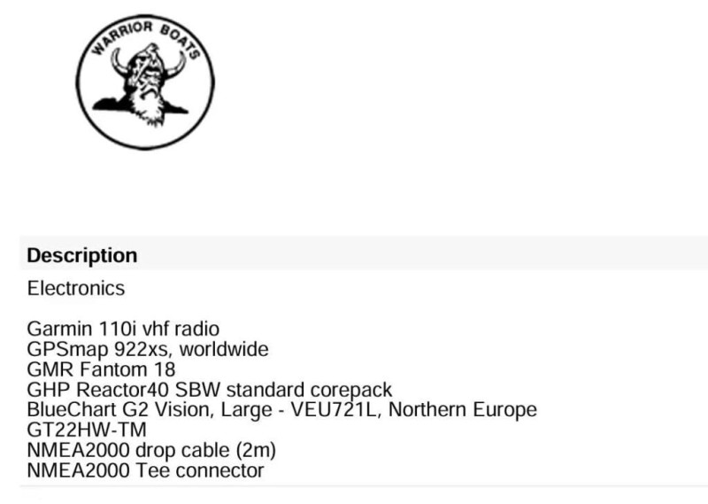 Autopilot, Ekkolod, Fishfinder, GPS, Kortplotter, Kompas, Radar, Sumlog, VHF-radio