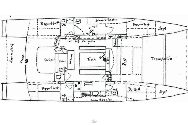 Her central engine was replaced with two Saildrive engines, located in each hull, offering excellent maneuverability. Her bridge deck clearance ranges from 90 cm to 60 cm. Currently stored ashore in Greece, this beautiful catamaran is available for viewings. If you’re seeking a well-maintained cruiser for the next sailing season, don’t miss this opportunity.
