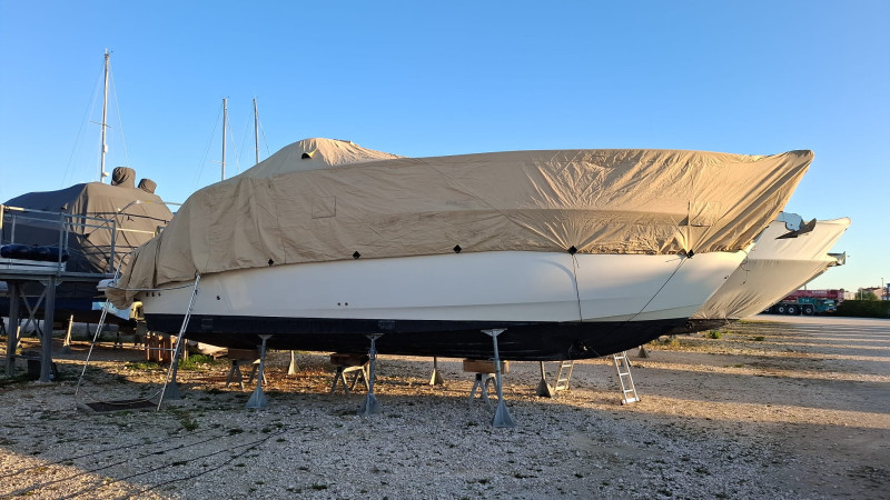Serviced, 2022 two new turbochargers, antifouling completely rebuilt, teak on bathing platform, teak in cockpit, bow sun cushion, bimini top with camper cover, fenders and mooring lines, additional 2 refrigerators, hot water system, kitchen, electric toilet, Garmin chart plotter with touchscreen, electric windlass, bow thruster, underwater lighting, Fusion sound system with subwoofer, floor and stair lighting, electric table, harbour cover, winter cover, and much more!
