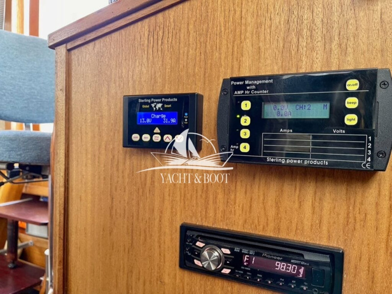 Anchor, Battery charger, Bow light, Shore power 230V, Solar battery charger, Inverter, Battery