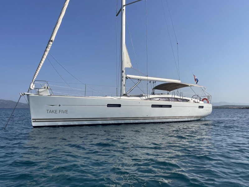 All information without guarantee! Details: Jeanneau 53, Year: 2014 / Model: 2015, From first owner and only used privately. Length: 15.73 m - Width: 4.77 m - Draft: 2.28 m (deep centerboard) 3-4 cabins with 2 bathrooms 1x Yanmar 4JH4HTE (1x 110 hp) with approx. 425 hours The most important extra equipment as follows: 6 KW generator with approx. 95 hours, air conditioning 3x , TV with antenna, electronics package Raymarine, autopilot, radar Digital HD 4 KW, electronic Genuafurler, 3 electric winches, mooring package, anchor package, VHF, AIS, Bose sound system, biminitop with LED, leather upholstery in the salon, gangway, sun pads on the foredeck, electronic safe, El. folding table in salon, inverter 220V-2000W, microwave, bow thruster, el. anchor with 2 control panels and counter, refrigerator, freezer, washing machine with dryer, epoxy shield and antifouling, and much more !!! If interested, please ask for more photos and a complete specification, also about the sails! Location: Sardinia - Italy Viewing after consultation with the owner! PLEASE REQUEST A COMPLETE SPZIFIKATION.