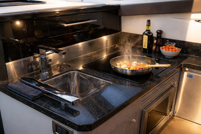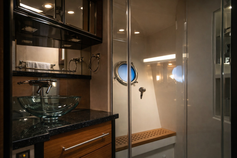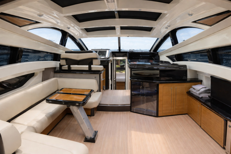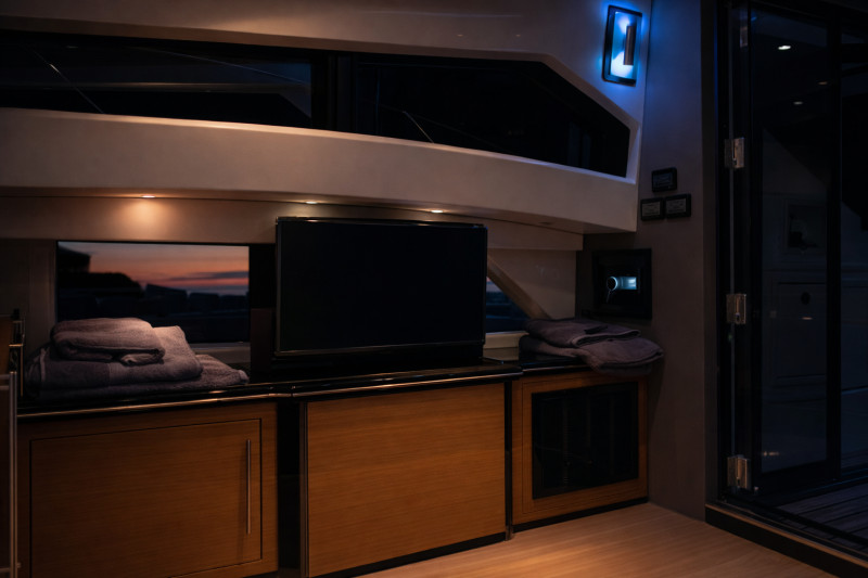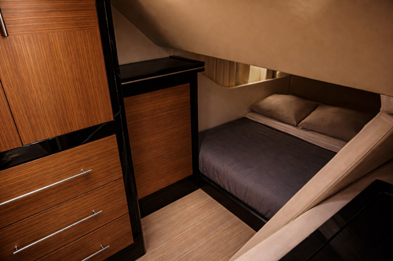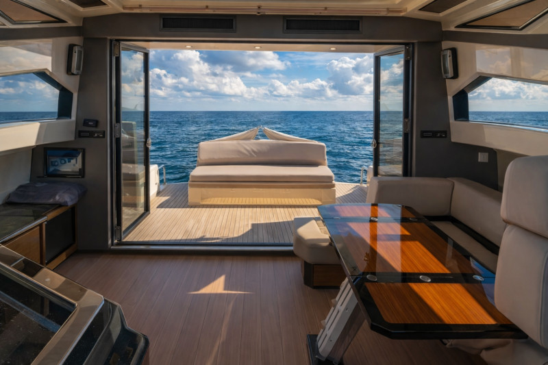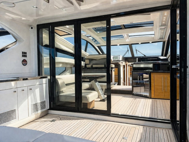 Second helm station on quarterdeck, Bow cabin, Owner's cabin, Guest cabin, Interior navigation station, Salon, Teak swimming platform, Teak on walkway, Teak bow, Teak cockpit