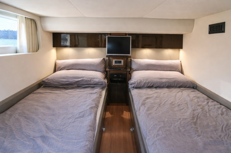 2. Refrigerator, Lowerable bathing platform, Anchor chain, Swimming ladder, Swimming platform, CD player, Cockpit cushions, Cockpit sink, Cockpit table, Deck shower hot/cold, Deck hatch, Pressure washer, DVD player, Fender, Mooring line, Electric gangway, Stern shower hot/cold, Stern door to bathing platform, Heating, Air condition, Speaker, Cushions, Radio, Electric/hydraulic trim tabs, TV, TV-antenna, Water heater, Boiler, other extras