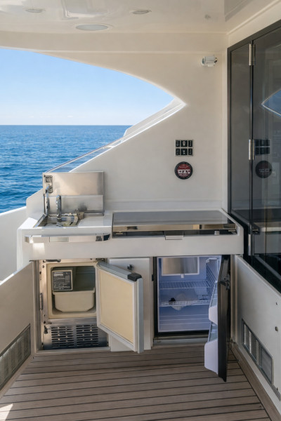 12V socket, 220V socket, Anchor, Anchor locker, Battery, Battery charger, Bilge pump automatically, Electric bilge pump, Mechanical bilge pump, Electric Bow windlass, Pressure water pump, Generator, Joystick, Shore power 230V, Windshield wiper