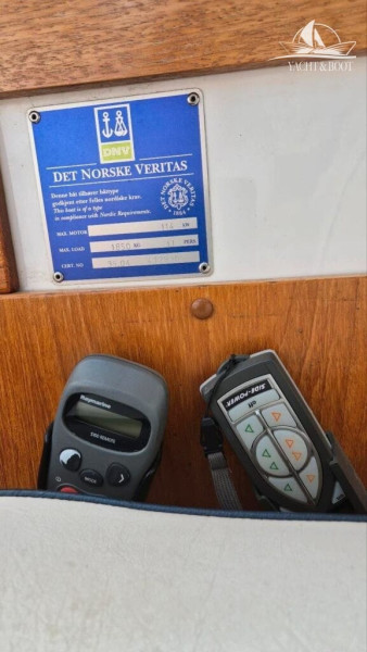 Autopilot, Echo sounder, Fishfinder, GPS, Plotter, Compass, Sumlog, VHF radio, AIS activ