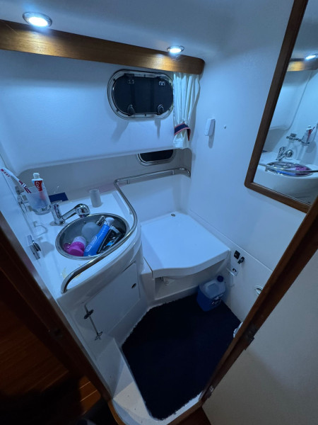 Anchor chain, Swimming ladder, Swimming platform, Bow thruster, Bow thruster, CD player, Deck hatch, Pressure washer, Fender, Stern shower hot/cold, Stern door to bathing platform, Heating, Radio, Septic tank, Sun cushion on the bow, Electric/hydraulic trim tabs, Anti-fouling, Water heater, other extras