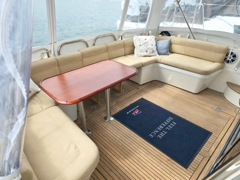 Large open aft cockpit with twin removable 3-seater L-sofas