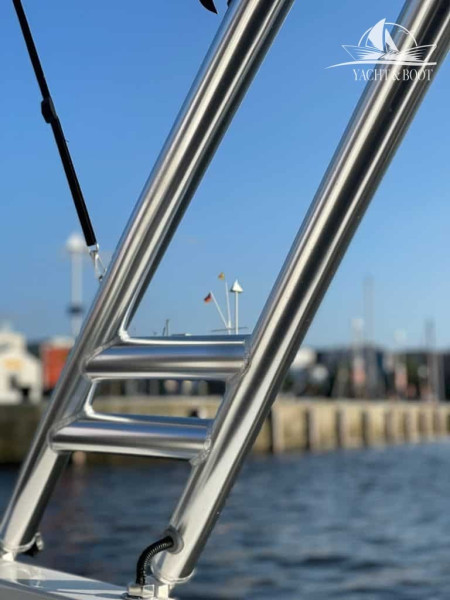 Swimming ladder, Swimming platform, Cockpit table, Deck shower, Pressure washer, Radio, Sun cushion on the bow, Speaker