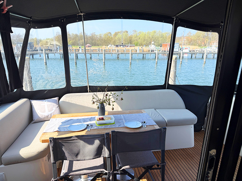 Ancla, Caja de ancla, Cargador batería, Bomba de sentina eléctrica, Instalación de lavado de cubierta, Generador, Conexión del país 230 voltios, Limpiaparabrisas con instalación de lavado