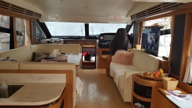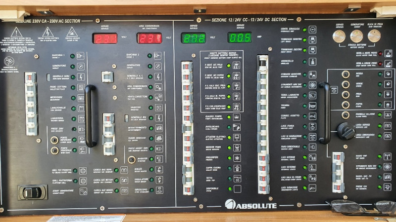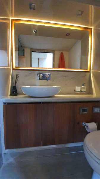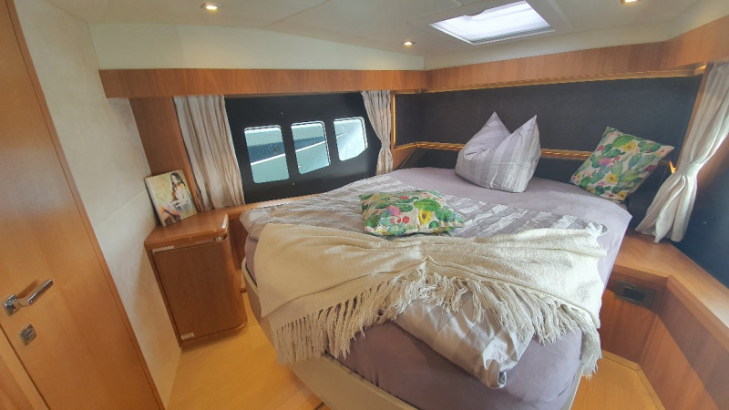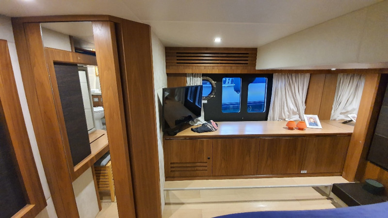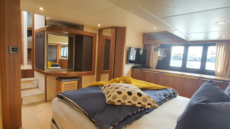12 kW generator, air conditioning in all cabins including the crew cabin at the stern, hydraulic gangway, lowerable swim platform with 450 kg load capacity, satellite TV system with LED TV, ice maker, washer/dryer, dishwasher, stove/microwave, fridge-freezer combo, bow thruster, joystick steering, sink, grill, and refrigerator on the flybridge, sink on the swim platform, stainless steel anchor, electric anchor winch with chain counter, electric cockpit awning, bimini, flybridge cover, sunshades for saloon windows, cockpit camper cover, sliding door port side next to the helm station, blackout curtains for cabins, 1800 W inverter, shore power connection, and much more!!