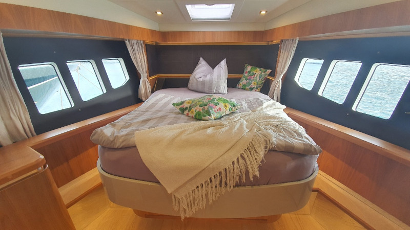 3 spacious cabins - 2 bathrooms with toilet and shower - Crew cabin with toilet