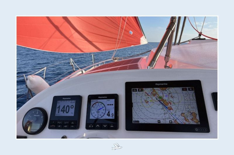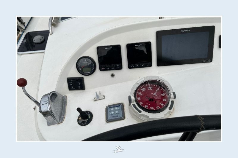 Autopilot, Echo sounder, GPS, Plotter, Compass, Radar, Sumlog, VHF radio, Wind instruments