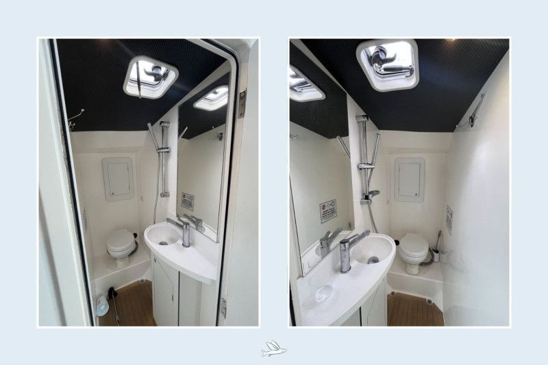 Bow cabin, Owner's cabin, Guest cabin, Salon, Electric WC + Wash basin + Shower