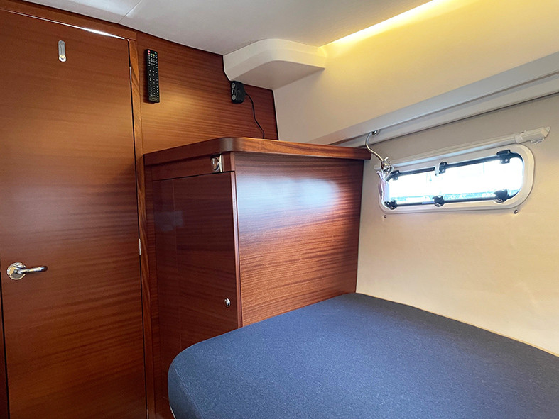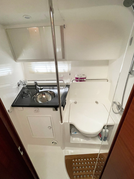 Cadena del ancla, Escala de baño, Plataforma de baño, Timón de chorro de proa, Instalación de agua a presión, Ducha de popa, Ducha de popa caliente / fría, Stern thruster, Compuerta de popa hacia plataforma de baño, Calefacción, Radio, Colchonetas de sol en la proa, Estabilizadores el./hidr., TV, Antena de TV, Pintura submarina, Calentador de agua