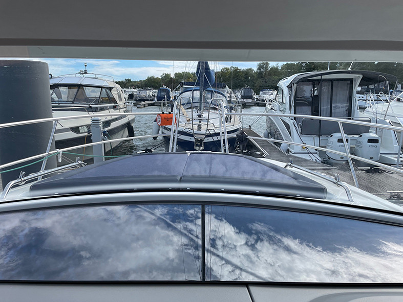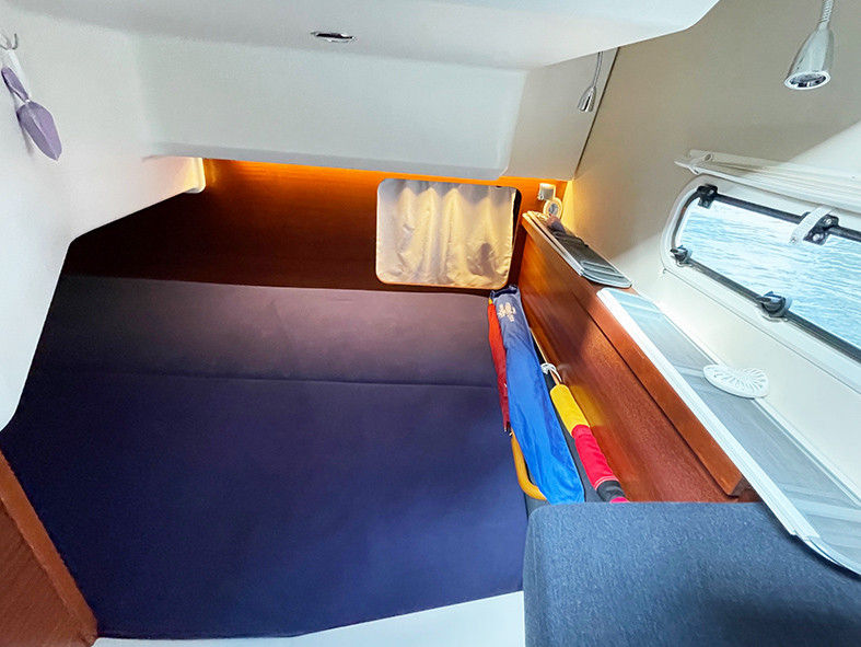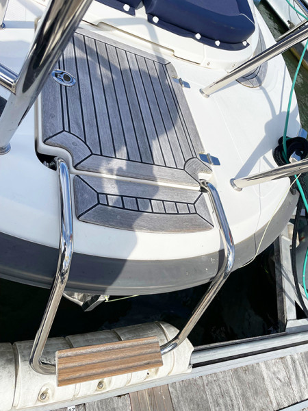 Cabina de proa, Cabina de invitados, Salón, Teca en plataforma de baño, Teca en pasillo de la cubierta, Teca en la proa, Teca en la caseta del timón
