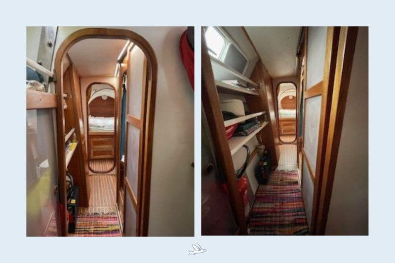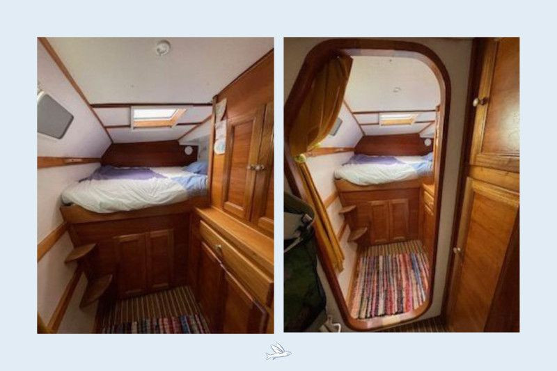 Achterkajüte, Bugkabine, Eignerkabine, Gästekajüte, Salon, Teak in Kabine, WC Marine + Waschbecken + Dusche