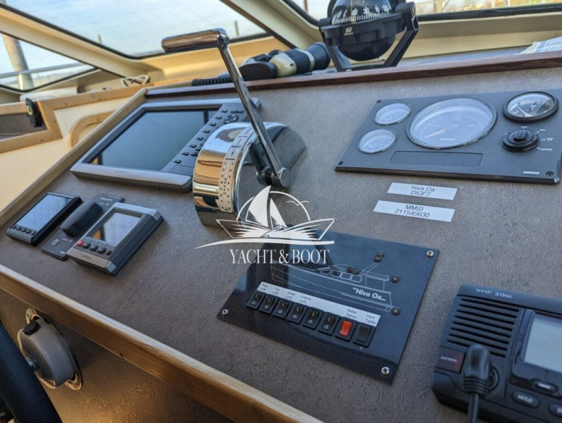 Pilote automatique, Échosondeur, Fishfinder, GPS, Traceur de route, Compas, Radar, Sumlog, Radio VHF, Anémogirouette, AIS activ